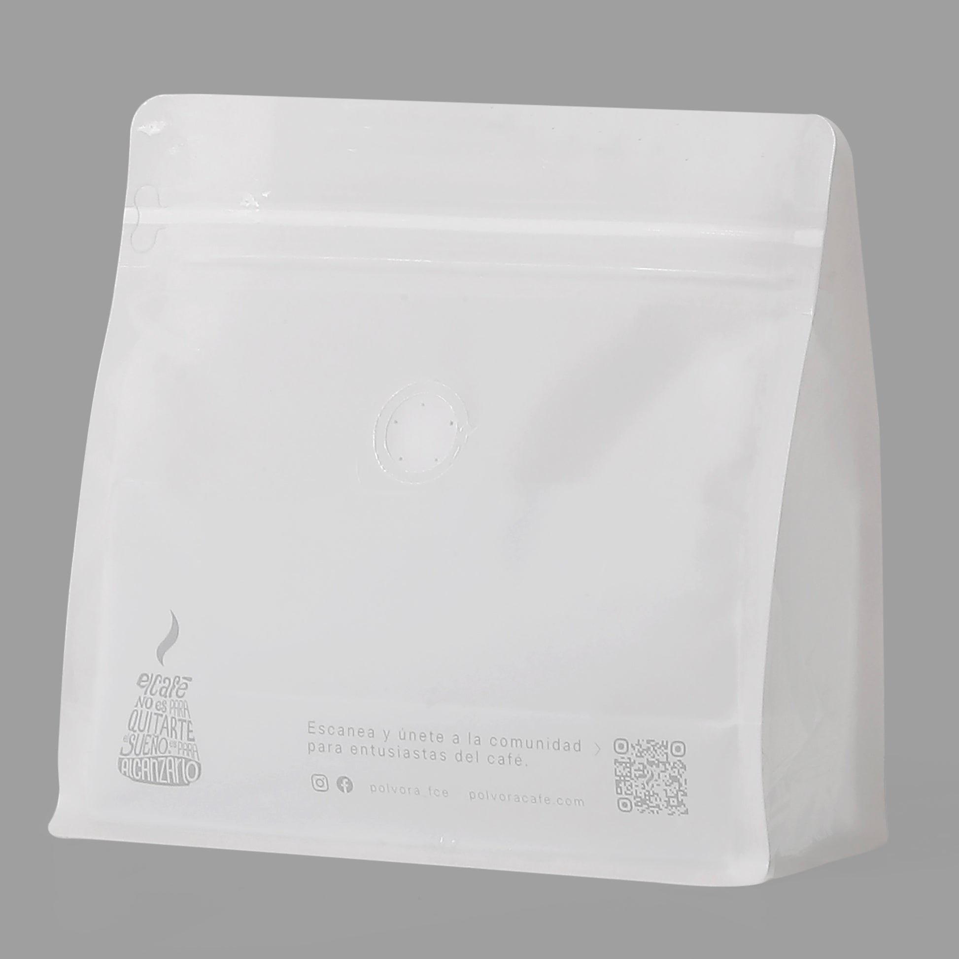 Esta bolsa de café está fabricada con material multicapa PE / EVOH reciclable.